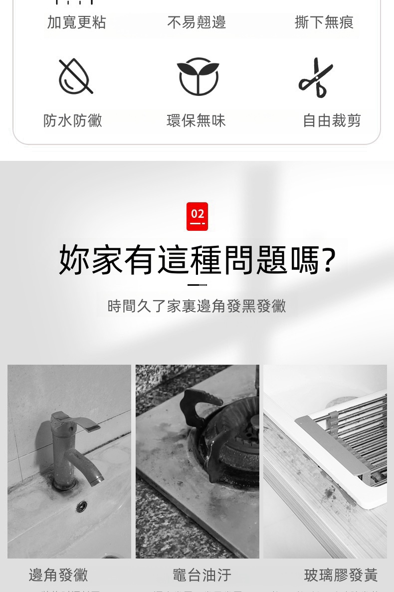 4分鐘前限時搶購 美縫貼防水防霉廚房水槽洗碗灶台封邊擋水條,衛生間馬桶邊緣縫隙貼 - 【98%客戶的選擇】5入組-NT$1150