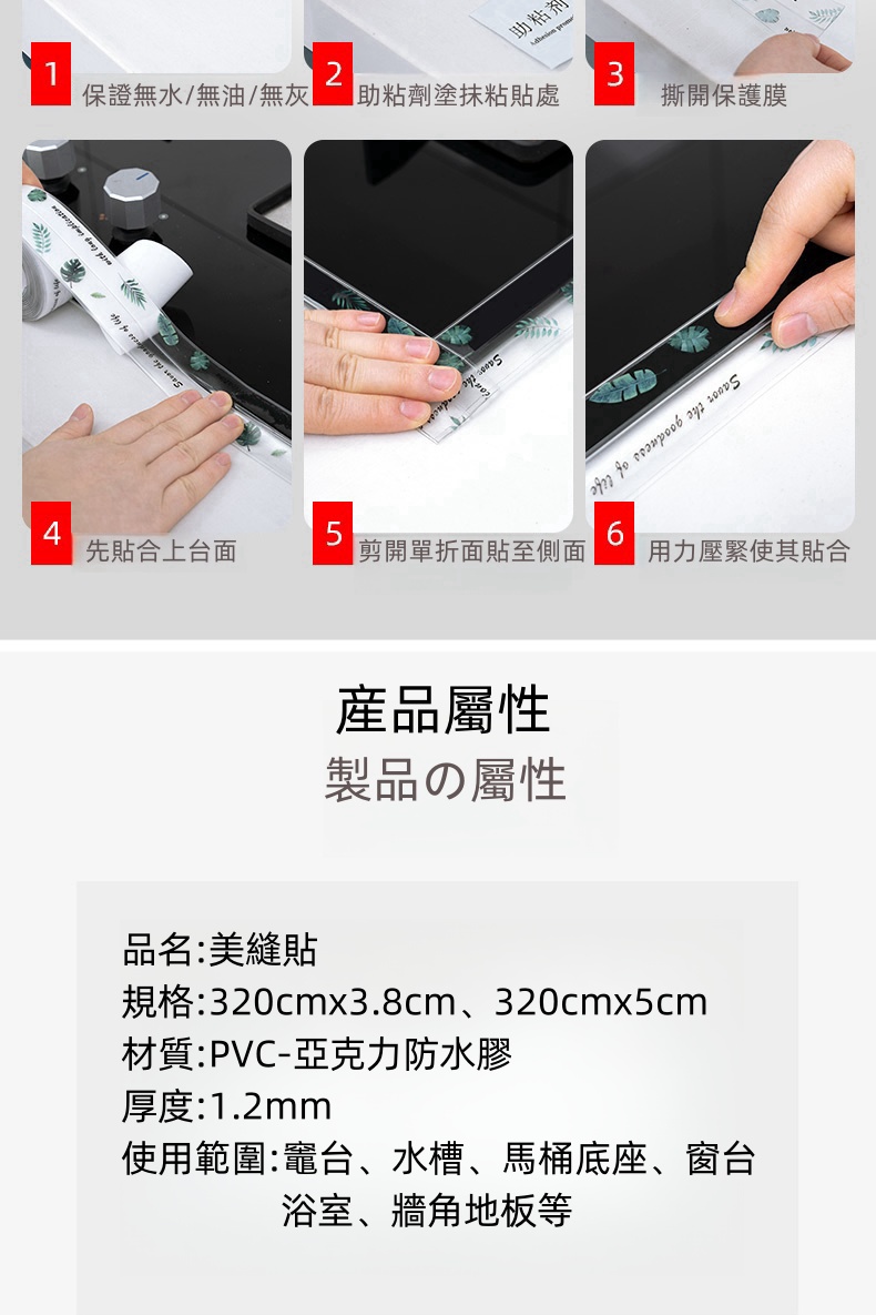 7分鐘前限時搶購 美縫貼防水防霉廚房水槽洗碗灶台封邊擋水條,衛生間馬桶邊緣縫隙貼 - 【嘗鮮價】3入組-NT$980
