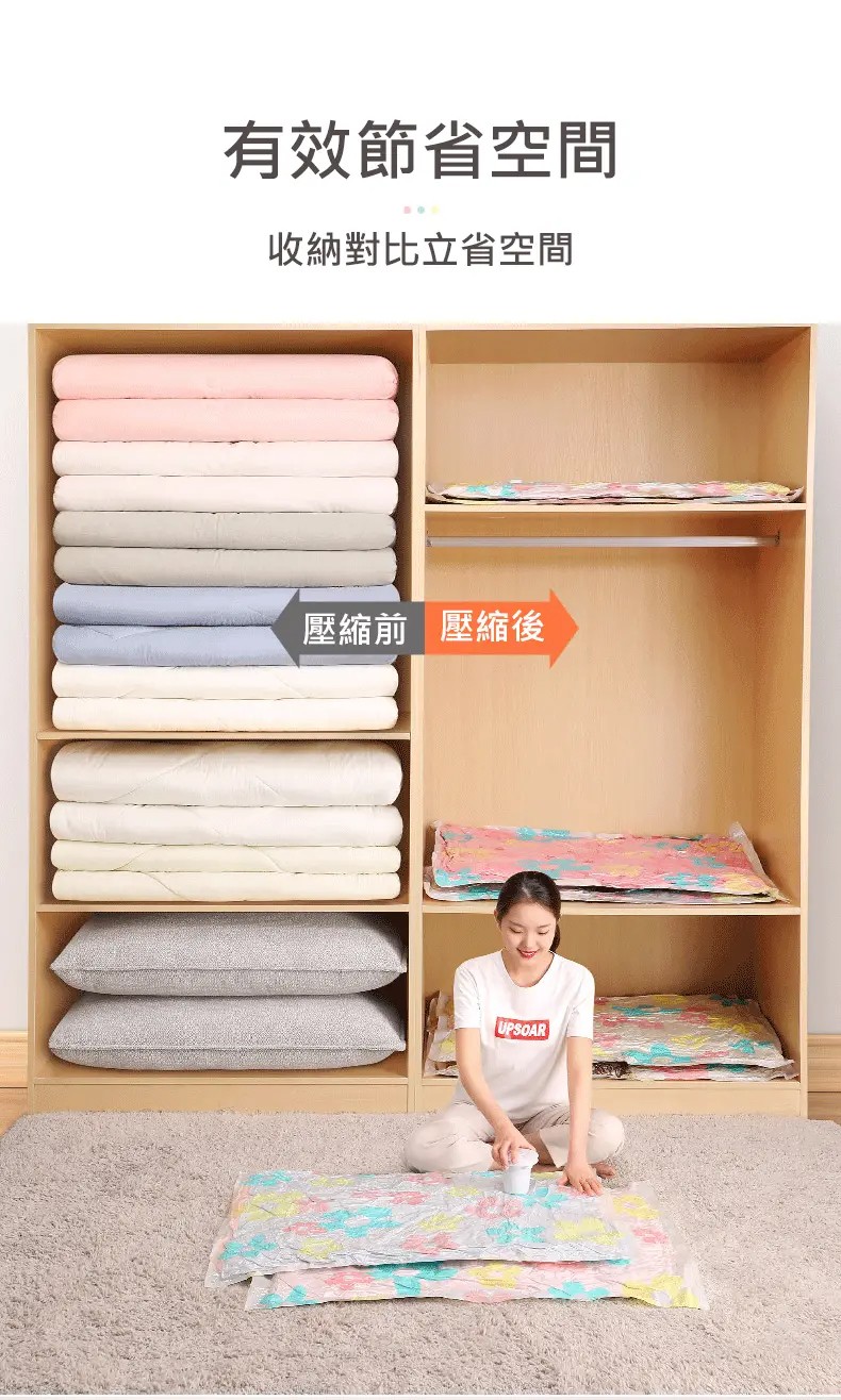 4分鐘前掛式真空壓縮袋推薦,輕鬆節省衣櫃空間 - 【買3送3】尺寸任選★贈電動抽氣機★ NT$999