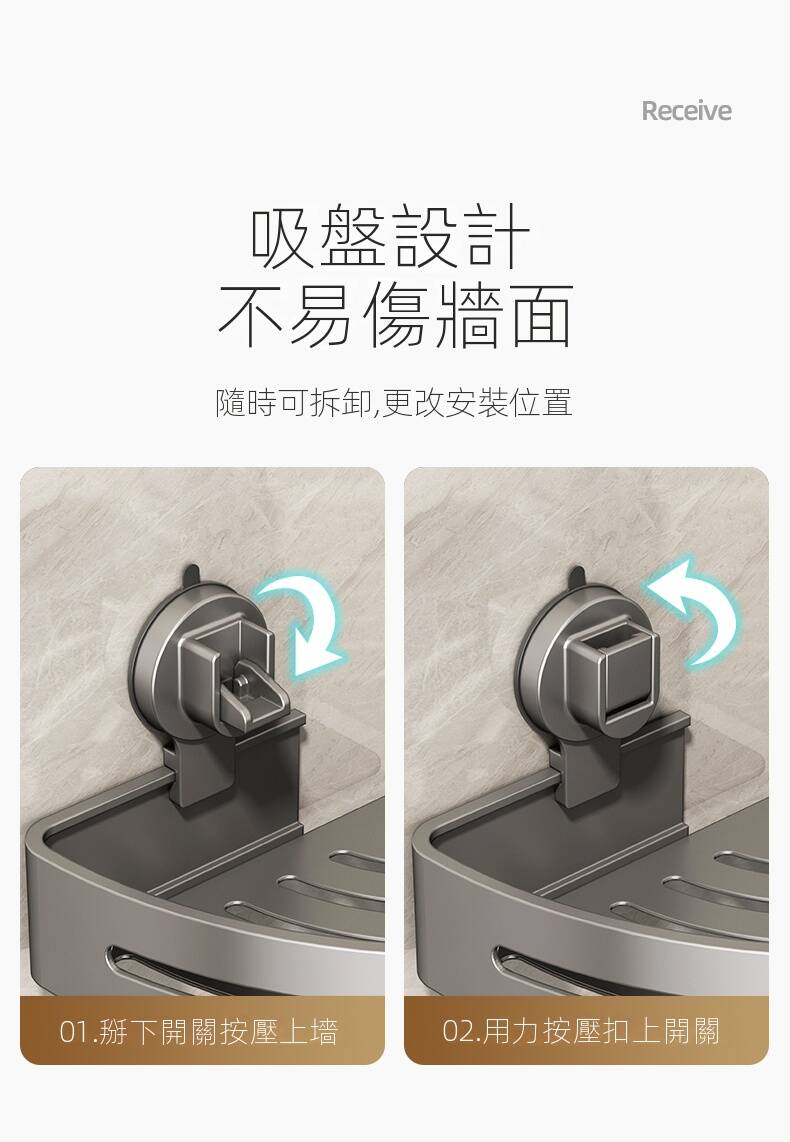 半小時前自帶吸盤,可隨時移動重復使用的置物架 免打孔廚房浴室衛生間三角置物架多用途壁掛收納架毛巾架 - 【超夯下殺】買一送二,共三入組 NT$1000