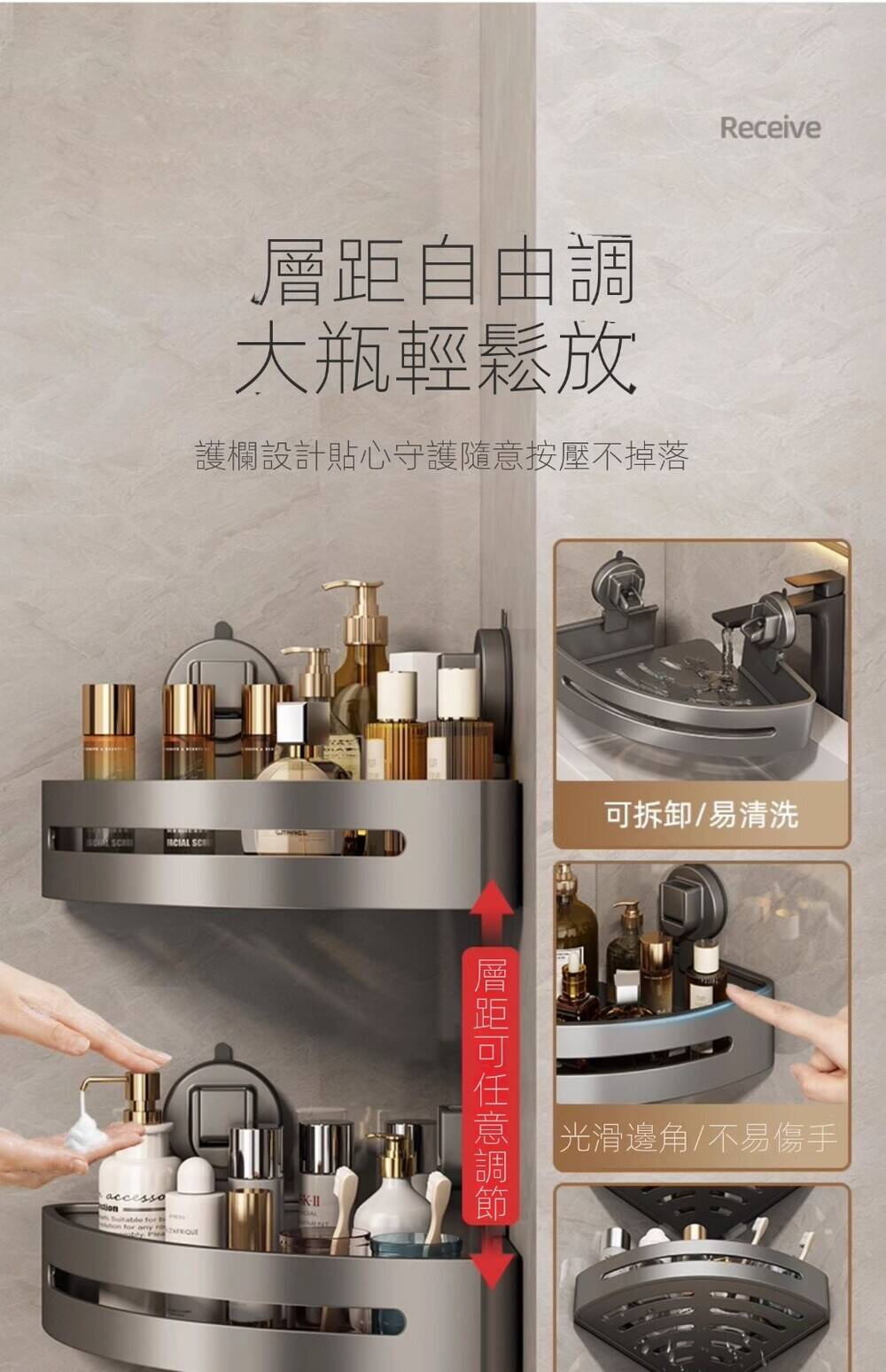 20分鐘前自帶吸盤,可隨時移動重復使用的置物架 免打孔廚房浴室衛生間三角置物架多用途壁掛收納架毛巾架 - 【超夯下殺】買一送二,共三入組 NT$1000